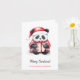 Cute Panda Santa Merry Christmas Greeting Card. Los colores negro, blanco y rojo de estilo kawaii llevan sombrero de Santa y un regalo. Texto personalizado.