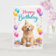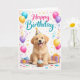 A cheerful and heart-melting birthday design featuring an adorable golden puppy wearing a colorful party hat, surrounded by bright balloons, playful confetti, and festive streamers. A cupcake with a glowing candle and neatly wrapped gifts complete the joyful scene.