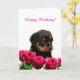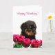 Tarjeta Cute Rottweiler Puppy Roses Rojos Feliz cumpleaños