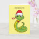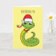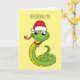 Tarjeta Cute serpiente verde con sombrero de santa caricat