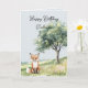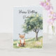 Tarjeta Cute Smiling Fox Field of Flowers Tree Birthday