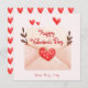 Tarjeta de felicitación del día de San Valentín con un sobre de acuarela linda con deseos de feliz día de San Valentín en la parte frontal y un patrón de corazones rojos en la parte posterior. Echa un vistazo a nuestra tienda para ver más artículos de esta colección.