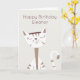 Envíe felices deseos de cumpleaños con este encantador diseño con un lindo gato con un ilustracion de sonrisa conmovedor. Puede personalizar fácilmente con su mensaje el texto curvo en la parte delantera y también las palabras en la parte posterior. También puede cambiar el estilo y el color del tipo de letra, así como el color de fondo crema, si lo desea a través de la opción Personalizar adicional. ¡Una gran elección para los amigos amantes del gato!