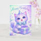 Send a dose of magic with this adorable kitten birthday card. Featuring a fluffy white cat with a party hat and gift box against a shimmering pastel galaxy background, this whimsical card is perfect for young girls, cat lovers, and anyone who loves a bit of sparkle.