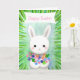 Tarjeta Cute White Bunny Rabbit Custom Text Happy Easter