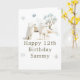 Rustic birthday card with cute wolves, a snow covered log, tree and snowflakes. Perfect for a winter birthday party. The words can be changed to suit your own details or requirements