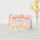 Cynthia. Mostrar y llevar este popular y hermoso nombre femenino diseñado como colorido nube de palabras hecho de tipografía de letras horizontales y verticales cursivas a mano en diferentes tamaños y adorables colores frescos. Usa tu nombre estadounidense positivo o muestra al mundo a quien amas o adoras. Mercar con este suave trabajo de texto es un gran regalo, no sólo en el mes de la historia de las mujeres, o regalo de cumpleaños.