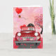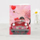 Tarjeta Dachshund Perro Conduciendo Coche con Corazones Sa