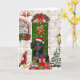 Perro Dachshund sentado fuera de la casa decorada con corona de Navidad, el árbol de Navidad es una excelente idea de regalo de Navidad para los amantes de los perros.