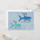 La tarjeta perfecta para todos los papás, padres, papás, padres y padres que existen. ¡Déjalos escuchar su canción favorita una y otra y otra vez! Mostrar a Daddy Shark y Baby Shark en el mar azul profundo du du du du...