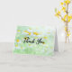 Tarjeta de agradecimiento con una fotografía fresca y veraniega que muestra una colección de margaritas salvajes con grandes centros amarillos creciendo en un campo verde.