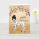 El cariñosamente dálmata se pone alto en la cubierta de esta tarjeta marrón que está destinada a enviar saludos de Acción de Gracias a cualquiera. Y dado que el perro agudo aparece en la portada, esta tarjeta funcionará tanto para los propietarios mascotas como para los no mascotas que solo aman tanto a los perros.