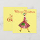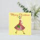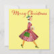 Navidades como se veía en los años 50 con esta obra de arte retro de una mujer vestida con gorra y vestido de falda completa, rojo y verde purpurinoso.