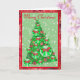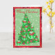 Feliz Navidad moderno árbol abstracto con la silueta de la raza Dandie Dinmont Terrier lazo adornos decoraciones navideñas en rojo, verde y blanco. La leyenda de Feliz Navidad en la parte delantera y trasera se puede cambiar a lo que desee. Incluso puede agregar amor y sus nombres debajo de la leyenda dentro de la tarjeta festiva.