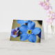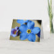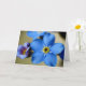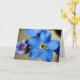 Una hermosa foto macro de flores de color azul claro olvido-me-not, tomada durante una noche de primavera. El saludo está escrito en un guión fluido con una preciosa tinta azul, pero puede ser personalizado tanto en contenido como en tono para que te acomode.