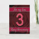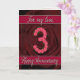 tarjeta de 3er aniversario con rosas y hojas