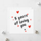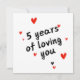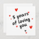 Celebra cinco hermosos años de amor con este diseño sincero que incluye encantadores corazones rojos y un juguetón tipo letra manuscrita. Perfecto para expresar su amor en un aniversario especial, este diseño es ideal para tarjetas personalizados, regalos y decoración de aniversario. Ya sea que busques un conservador romántico o un regalo de aniversario personalizado, este diseño único aporta calidez y alegría a cualquier celebración. Adecuado para un quinto aniversario de boda o cualquier hito en su relación amorosa