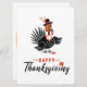 Este elegante diseño de tarjeta de dibujo animado de pavo de Acción de Gracias presenta un pavo bellamente diseñado con detalles intrincados y un ojo guiñando, capturando la esencia de este festivo especial.