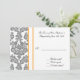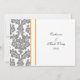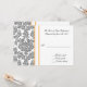 tarjeta de aceptación de boda, damasco negro, con selección de comida, número de asistentes, aceptar o lamentar.