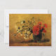 Tarjeta de aceptación boda, Vincent van Gogh, Vase con claveles rojos y blancos de fondo amarillo. Con la selección de comidas, el número asiste, acepta o rechaza una firma.