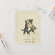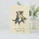 Tarjeta de acompañamiento para boda de gatos elegantes. La dulce novia vintage sostiene un ramo de novia con rosas blancas y el gato del novio camina junto a ella con su sombrero de copa negro. Fondo floral marfil. Personalice el área de texto con su información.