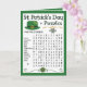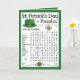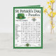 Los niños pequeños estarán encantados de conseguir una tarjeta de rompecabezas con actividades divertidas de su parte. La tarjeta de rompecabezas está decorada con ilustraciones de símbolos celtas, un gorra, una olla de oro, un zapato de leprechaun, shamrock e instrumentos musicales irlandeses. La tarjeta de actividad perfecta para su hijo, sobrino, sobrina, nieto, estudiante, aula o ahijado. Los colores son: bakersbrown, caramelo, pinegreen, verde, negro, negro claro, gris, gris, dorado, verde oscuro, olivedrab. Los juegos incluían: Encuentra las doce palabras, Punto a punto, Encuentra las cinco rocas de champú y el laberinto musical irlandés. Saludo interno: Lá Fhéile Pádraig sona duit! ("¡Feliz Día del Festival de Patrick para ti!")