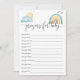Permita que los invitados a su baby shower tengan la oportunidad de orar por el pequeño con una Tarjeta de actividad de oraciones por el bebé. Los invitados pueden llenar esta tarjeta de sol boho y arcoíris y dejar dulces pensamientos que los futuros padres puedan leer y atesorar más adelante.