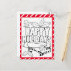 Tipografía de grandes letras "Felices Fiestas" para colorear páginas con grandes cintas, bastones y dulces. Se puede enviar por correo o colgar como arte mural en nevera. Gran actividad de entretenimiento para los niños como favores de fiesta, profesores para actividad estudiantil, o mandar a los abuelos de su hijo. Esta tarjeta tiene un borde rayado diagonal blanco rojo.