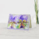 Tarjeta de acuarela de agradecimiento de pensamiento morado. Pintado a mano con acuarela de las violas que crecen en una maceta aquí en mi jardín en primavera. ¡Una pequeña sonrisa en una tarjeta!