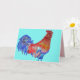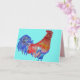 Tarjeta de Acuarela Gallo Rojo y Azul Aqua