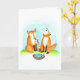 La familia de zorros está dando la bienvenida a un nuevo bebé a su familia. Están claramente muy emocionados (uno de los padres zorros está aullando de alegría) y los pequeños zorros están curiosos acerca de su nuevo hermano. Esta tarjeta sería una excelente opción para felicitar a alguien por la adición más reciente a su familia. El interior de la tarjeta muestra el mensaje "¡Te queremos!", lo que hace que esta tarjeta sea muy versátil para celebraciones de adopción, baby showers y más.