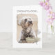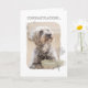 Una felicitación por adoptar una tarjeta de perro refugio con una imagen fotográfica a color de un perro maravillosamente escrupuloso con expresión entrañable.