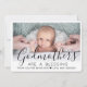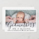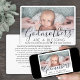 Una manera reflexiva de agradecer a la madrina de tu bebé es darle un elegante regalo fotográfico que ella puede salvar como un aguijón. Todas las fotos y frases son simples de personalizar, incluyendo una cita en el frente que dice "Las Madreras Diosas son una bendición, gracias por ser mías". Si prefiere escribir su mensaje de vuelta con la mano, simplemente elimine el texto de la nota de agradecimiento del ejemplo. (IMAGEN PLACEMENT TIP: Una manera fácil de centrar una foto exactamente como quieres es recortarla antes de subirla al sitio web de Zazzle.) Esta plantilla de tarjeta de felicitación personalizada incluye tipografía minimalista moderna, caligrafía de escritura manuscrita y una imagen de su elección. El diseño neutro de género en blanco y negro es adecuado para madrinas, padrinos, bebés o chicas. Es una manera única y elegante de expresar gratitud a los padrinos después de un bautismo, bautizo u otra ocasión en la vida de su hijo.