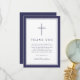 Elegant Navy Blue Cross Boy First Communion Thank You Card.