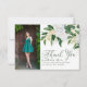 2 tarjeta de agradecimiento fotográfico con acuarelas florales de flores de peonía blanca y vegetación. Gracias está escrito en caligrafía rápida y su texto personalizado en tipografía serif elegante. Perfecto para las celebraciones de Sweet 16 fiesta o Quinceanera por ejemplo. Por favor, vea mi colección Emerald Greenery & White Peony para ver los elementos coincidentes o, envíeme un mensaje para crear las plantillas que necesita.