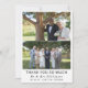Tarjeta de agradecimiento de boda mayor de doble lado con una cara impresa con un collage limpio de dos de sus fotos bodas sobre sus nombres, fecha boda y ubicación con un diseño moderno y limpio. El otro lado tiene una tarjeta de agradecimiento alineada donde se puede escribir un agradecimiento a mano. Tarde en la vida boda gracias tarjeta personalizada con sus fotos y con sus nombres en una fuente más grande.