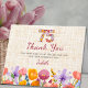 Send a heartfelt thank you after a 75th birthday celebration. This feminine, cheerful wildflower design pairs a bold “75” with a bright floral border and a neutral textured background for a classic look. Perfect for thanking guests for attending, gifts, and kind wishes. Customize the name and message to match your party theme. Enjoy!