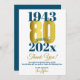 Una atrevida y sorprendente fiesta de cumpleaños número 80, tarjeta de agradecimiento. Esta tarjeta especial de cumpleaños de hito consiste en fecha de nacimiento y cumpleaños en tipografía azul - con los 80 resaltados en una fuente de efecto oro. Añadir un mensaje para un regalo de fiesta personalizado gracias.