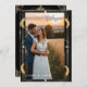Trae elegancia atemporal a tu día especial con esta tarjeta de agradecimiento a tu Boda de arte de glamour vintage. Inspirado en la época dorada del viejo Hollywood, este diseño combina lujosos acentos dorados con audaces antecedentes negros. Perfecto para las parejas que quieren que su boda irradie sofisticación, clase y el inolvidable encanto de los años 20.
