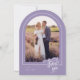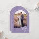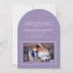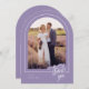 Una elegante y moderna tarjeta de agradecimiento boda en forma de arco que presenta un moderno estilo manuscrito "gracias" texto y bordes elegantes alrededor de tus fotos. Personalice la plantilla con sus iniciales, fecha de boda, mensaje y fotos. Se muestra en una paleta de lavanda y blanco, pero todo el texto, los elementos y los colores de fondo son editables, de modo que se puede crear una tarjeta personalizado que coincida perfectamente con la foto. © Kimbellished, LLC