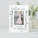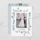 Dusty Blue Floral Photo Boda Tarjeta. Esta tarjeta de agradecimiento boda presenta hermosas acuarelas pintadas a mano, azul polvoriento y rosas crema con hojas verdes de salvia. La parte posterior incluye un mensaje para personalizarlo o dejarlo en blanco para que pueda escribir a mano un mensaje. Forma parte de la colección de Bodas florales Dusty Blue.
