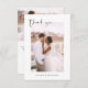 Expresa tu sincera gratitud en un estilo atemporal con esta tarjeta de agradecimiento de Boda de guiones elegantes. Con una caligrafía refinada, un diseño fotográfico completo y elementos de diseño minimalista, esta tarjeta es la manera perfecta de agradecer a sus huéspedes mientras muestran un momento apreciado desde su gran día. Ideal para temas bodas modernos, románticos o clásicos, es totalmente personalizable con tu mensaje y foto.