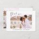 Expresa tu sincera gratitud en un estilo atemporal con esta tarjeta de agradecimiento de Boda de guiones elegantes. Con una caligrafía refinada, un diseño fotográfico completo y elementos de diseño minimalista, esta tarjeta es la manera perfecta de agradecer a sus huéspedes mientras muestran un momento apreciado desde su gran día. Ideal para temas bodas modernos, románticos o clásicos, es totalmente personalizable con tu mensaje y foto.