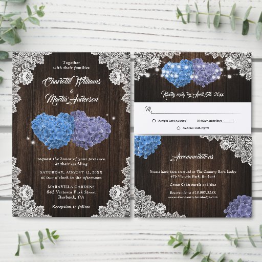 Gracias a tu invitado por compartir en tu día especial con estas románticas cartas de agradecimiento al boda rústico hidrangea morado y azul. Elementos coincidentes disponibles.