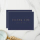 Esta elegante letra de oro formal, tarjeta de agradecimiento de impresión marina es perfecta para un simple boda. El moderno diseño clásico cuenta con una magnífica y elegante tipografía de oro de imitación de champán. Nota: Este diseño no tiene Relieve metalizado oro real. Es un gráfico de alta calidad hecho para parecer un Relieve metalizado dorado.