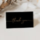 Esta tarjeta de agradecimiento de boda dorado clásico negro doblado es perfecta para un boda moderno. El diseño, sencillo y elegante, presenta una tipografía de escritura clásica y elegante en oro. Personaliza el interior de la tarjeta con tus nombres y un mensaje de agradecimiento. O bien, deje la sección de mensajes de agradecimiento en blanco y escriba a mano una nota personalizada en cada tarjeta. Estas tarjetas se pueden usar para un boda, una ducha de bebé, o en cualquier momento que quieras agradecer.