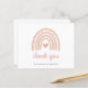 Cute Chica presupuesto Baby Shower Gracias Tarjeta con un arcoiris boho en colores pastel mudos junto con un corazón rosado en el medio. Debajo está "gracias" en escritura junto con los nombres de Mamá en ascenso y Bebé. El reverso tiene tu mensaje personalizado. Esta tarjeta de agradecimiento del personalizado hace que enviar sus tarjetas de agradecimiento sea rápido y fácil.