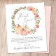 Cuidada tarjeta de agradecimiento económica para tu ducha de bebé con "Gracias" en un elegante guión gris con un chorro de corazón, y una cortina de flores de color rosa y coral con calabazas, flores y vegetación. Personalice su mensaje de agradecimiento en una tipografía moderna y sencilla y añada sus nombres en un guión tipo firma.