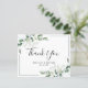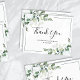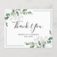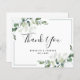 Expresa tu amor y gratitud a amigos y familiares por celebrar contigo en tu día especial con esta elegante tarjeta de agradecimiento de boda de eucalipto. La tarjeta está en blanco al revés para que escriba a mano un mensaje de agradecimiento.