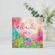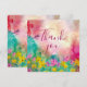 Experimenta la alegría de la gratitud con esta vibrante y personalizable tarjeta de agradecimiento. La tarjeta tiene un fondo acuático que baila en tonos rosas, naranjas, verdes y amarillos, que recuerda a una bella puesta de sol o amanecer. Las palabras "Gracias" se escriben elegantemente en el centro, ofreciendo un mensaje sincero al destinatario. Al final de la tarjeta, florecen encantadoras flores amarillas y rosas, agregando un toque de belleza a la naturaleza a tu expresión de agradecimiento. Además, el fondo de la tarjeta tiene un texto de personalizable completo donde puedes escribir tu mensaje de agradecimiento.